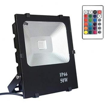 AUFUN 50W LED Fluter RGB mit Fernbedienung - 4 Modi, 16 Farben, wasserdicht IP66