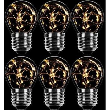 LED Deko Leuchtmittel im 6er Set, Kupferkabel, Tropfenform, 1W = 7W, E27, klar, extra warmweiß 2200K