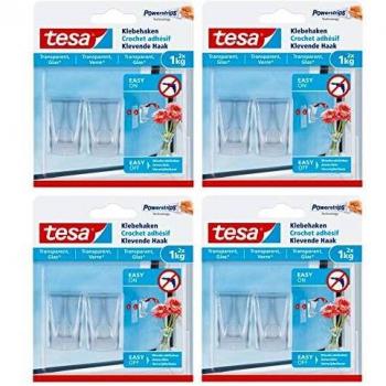Tesa Powerstrips TE-77735-00000, Klebehaken für transparente Oberflächen und Glas, 2er Pack