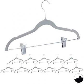 Rutschfeste Samtbügel mit Clips, 12er Set, Grau