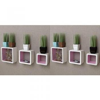 6er Set Wandregale in Rosa und Weiß