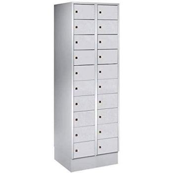 Wolf Schließfachschrank 20 Fächer, Stahl lichtgrau RAL 7035, H1850 x B600 mm, Zylinderschloss