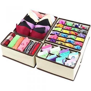 CGBOOM Ordnungssystem für Kleiderschrank, 4er Faltbox für Unterwäsche und kleine Accessoires