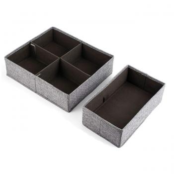 Grau-Zickzack Stoffbox 6-teilig – Kleiderschrank-Schubladen Organizer