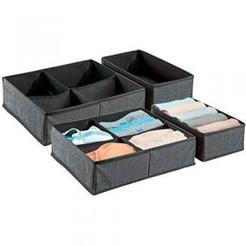 Stoffschubladensystem mDesign – 4er Set, dunkelgrau/schwarz