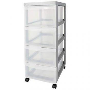 Iris Ohyama Kompakter Schubladenschrank - 4 Schubladen (2 x 15 L + 2 x 7 L) - Mit Rollen für einfache Mobilität