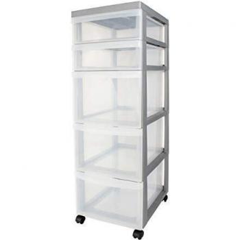 Iris Ohyama Flexibler Schubladenschrank mit 5 Schubladen und Rollen - Grau