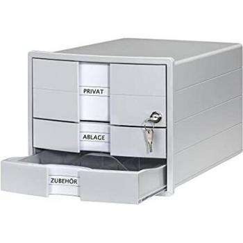 HAN IMPULS Schubladenbox, DIN A4/C4 3 geschlossene Schubladen inkl. Einsatz + Schloss Hellgrau