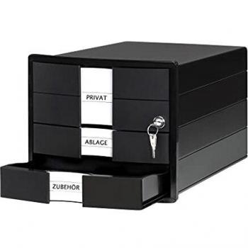 HAN Schubladenbox IMPULS mit Schloss schwarz DIN C4 mit 3 Schubladen