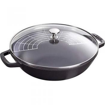 Staub Wok mit Glasdeckel schwarz rund 30 cm