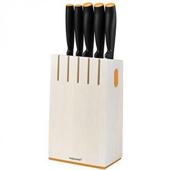 Fiskars Messerblock 5 Stück – Birkenholz, 14,5 cm × 36 cm
