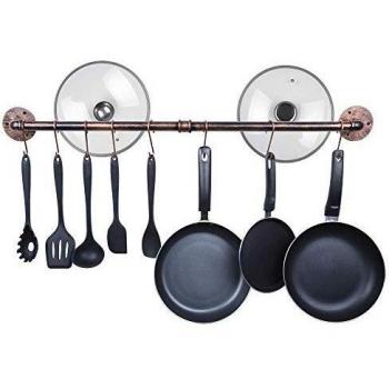 Topflappen Wandhalterung, Pfannenaufhänger Stange mit 10 Haken, Küchenhelfer Regal