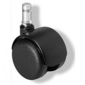 Schwarze Stuhlrollen aus Metall‑Kunststoff mit 10 mm Pin und 50 mm Durchmesser, die bis zu 650 kg tragen; leicht, rutschfest und ideal für schwere Bürostühle auf Hartböden.