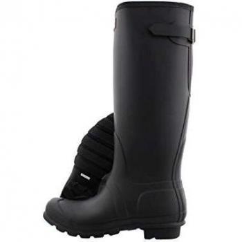 Schwarze Gummistiefel für Kinder mit reflektierenden Streifen sorgen bei Regen und Nacht für trockene Füße, sichere Sicht und rutschfeste Traktion auf nassen Oberflächen.