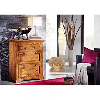 Ausgezeichnete Akazienkommode mit Honiglack Oxford, 47 × 43 × 112 cm, vier großzügige Schubladen und ein klassisches koloniales Flair – perfekt für stilvolle Wohnräume.