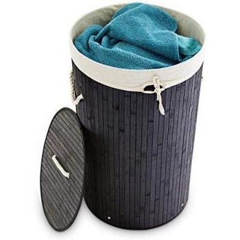 Relaxdays Wäschekorb 1 Wäschekorb Bambus rund ca. 70 Liter - schwarz/weiß (1 St)