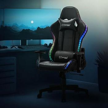 ML-Design Gamingstuhl mit RGB-LEDs und Bluetooth-Lautsprechern, ergonomisch, Kunstleder, Weiß