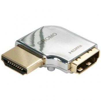 Der Lindy 41506 Cromo Adapter wandelt ein HDMI-Stecker‑zu‑Buchse-Kabel in einen schlanken 90°‑Rauf‑Winkel um, sodass das Signal sauber nach oben geführt wird; die silberne Oberfläche und stabile Bauweise gewährleisten eine klare Bild- und Tonübertragung.