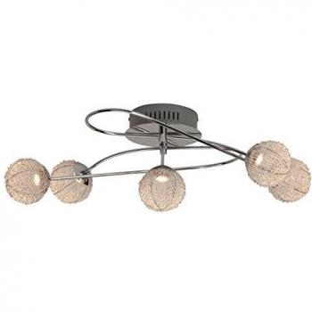 Vier schlanke Flammen aus chromiertem Metall und durchsichtigem Glas bilden die Wand‑ oder Deckenleuchte; integrierte LED‑Lampen (4×5 W) erzeugen 420 lm warmweißes Licht bei 3000 K, ideal für ein modernes Ambiente.
