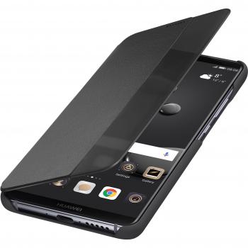 Ein tiefes Blau umhüllt den Huawei Mate 10 Pro in einem schlanken Flip‑Cover; die klare Oberfläche schützt das Gerät, während ein integrierter Kartenfächer diskrete Platz für Karten bietet und das Handy stilvoll präsentiert.
