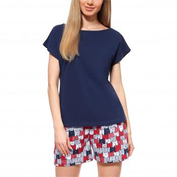Merry Style Damen Schlafanzug MS10-178 (Blau mit süßem Katzenmuster, Größe S)