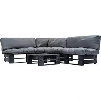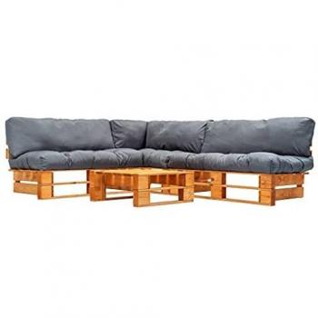 Holz-Gartenmöbelset mit grauen Polstern