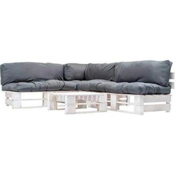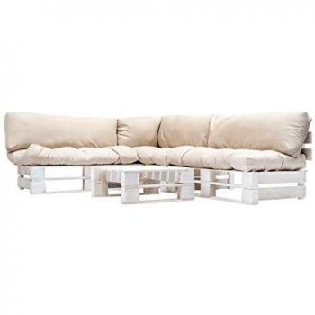 Paletten-Sofagarnitur in Sandfarbe mit Kissen