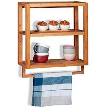 Wandregal Bambus, 3 Ablagen, Handtuchstange, Einlegeboden, Hängeregal für Küche & Bad, hbt 58,5x52x21cm, natur - Relaxdays