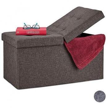 Gepolsterte Sitzbank mit Stauraum, klappbarer Deckel, faltbar, braun - Relaxdays