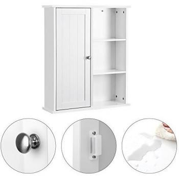 Wand-Badschrank mit Tür und Regalen, 60 x 71 x 18 cm