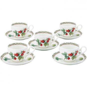 Noritake Orchard Garden Tassen- und Untertassenset 250 cc – Mikrowellengeeignet, 5 Stück, Bone China (F97887/4911)