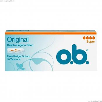 O.B. Original Tampons Super Plus in einer Packung von 16 bieten mit ihrem weichen, atmungsaktiven Design und hoher Absorptionskraft ein trockenes, angenehmes Gefühl – ideal für den ganzen Tag.