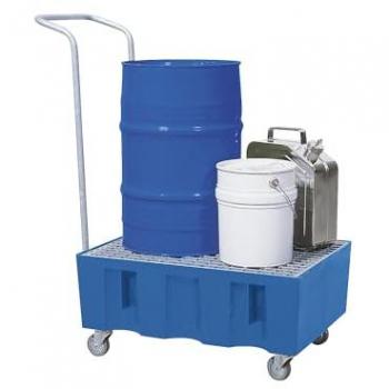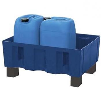 Robuste PE‑Auffangwanne mit 60 Liter Fassungsvermögen, verzinktem Gitterrost für effizienten Abfluss und vier stabilen Füßen, die ein sicheres Standverhalten gewährleisten – ideal zum Sammeln von Flüssigkeiten in industriellen oder Lagerumgebungen.