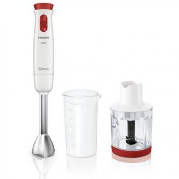 Der Philips Viva HR2650/90 Stabmixer verbindet 800 W Leistung mit einem ergonomischen Edelstahlgriff aus rostfreiem Stahl und strapazierfähigem Kunststoff, sodass Suppen, Smoothies oder Pürees mühelos zubereitet werden können – kompakt, leicht zu reinigen und ideal für den Alltag.
