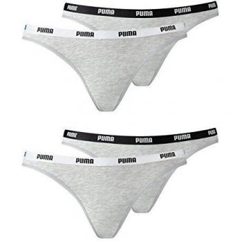 Puma Damen Iconic Bikini Slip 4er Pack, Größe:M, Farbe:Graufarben