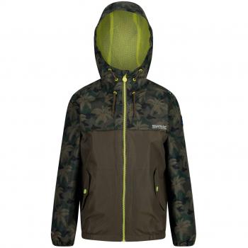 Regatta Kids‑Hubbell Regenjacke mit Netz‑Futter und Kapuze – Camouflage/Traubengras, 15–16