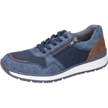 RIEKER Herren Sneaker Halbschuhe Gr. 42, bunt (dunkelblau/braun), Lederimitat/Textil, bequeme Freizeitschuhe mit kontrastfarbigen Details