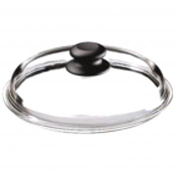 Ein klarer Borosilikatdeckel mit 24‑cm Durchmesser, der sich perfekt auf Bratpfannen legt und bis zu 260 °C aushält; ein Edelstahlgriff sorgt für sicheren Halt beim Kochen.