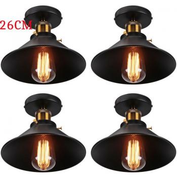 Deckenleuchte Vintage Retro Deckenlampe Industriell Eisen Lampenschirm Hutform 22cm Schwarz 4PCS