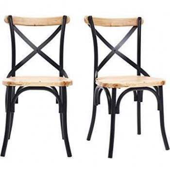 Stilvolle Industrie-Stühle in Schwarz mit Holz und Metall (2er-Set)
