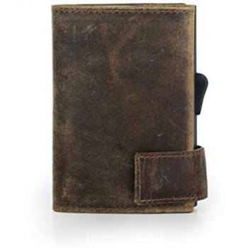 SecWal Vintage‑Lederbörse – Kartenetui, 1‑Fach, Braun, klassisch