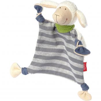 Ein kuscheliges Schaf aus organischem Baumwollstoff in beruhigendem Grün, das sanft die kleine Hand umschließt und beim Einschlafen tröstet; leicht zu waschen, hautfreundlich.