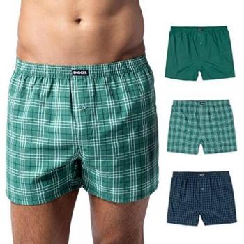 Snocks American Boxershorts Herren Weit 3 Paar Mix (Klein Kariert) Größe M