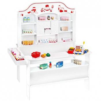 Verkaufsladen mit Café & Shop, über 100-teiligem Zubehör & elektronischer Kasse, Holz lackiert, Natur & Weiß, roba