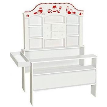 Roba 480022 Kaufladen, Kinder Kaufmannsladen, Holz, Verkaufsstand mit Seitentheke, Uhr, Rückwand und weißen Schiebetüren, Natur/Rosa