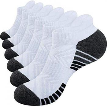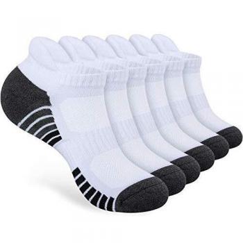 Schnellatmen Sneaker‑Socken PULIOU – 6 Paar gepolsterte Sportsocken in Weiß (L02, Größe 35-38)
