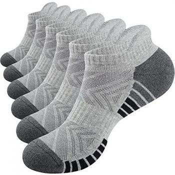 Gepolsterte PULIOU Lauf‑Sneakersocken (Baumwolle) – 6 Pack, grau L02, Herren/Damen, Größe 39–42