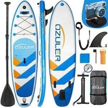 OZULER SUP Board für Anfänger - Aufblasbar, 180kg, mit Kamerahalterung und Rucksack (blau)