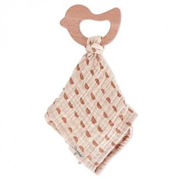 Sterntaler Musselin Schmusetuch mit Holz-Greifring Vogel beige