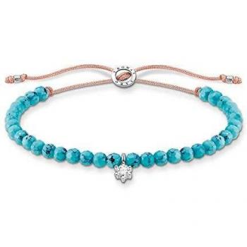 Thomas Sabo Armband mit türkisen Perlen und weißem Stein, 925 Sterlingsilber, 13-20 cm
